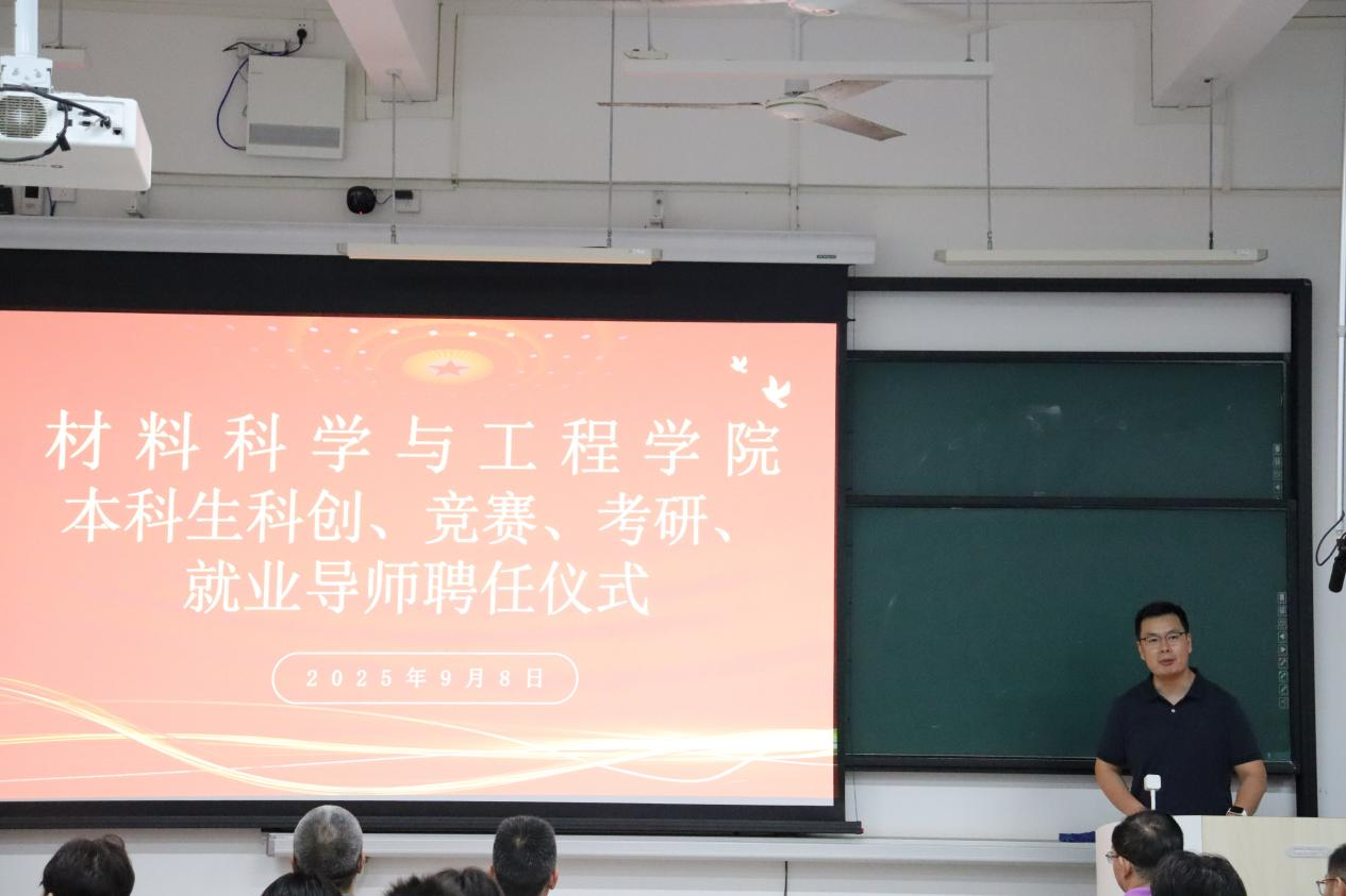 为进一步提升学生创新能力,激发学生参与竞赛热情,助力学生考研及就业,欧冠官方网站材料科学与工程学院于2025年9月8日晚在慎思楼A101室举办了本科生科创、竞赛、考研、就业导师聘任仪式。