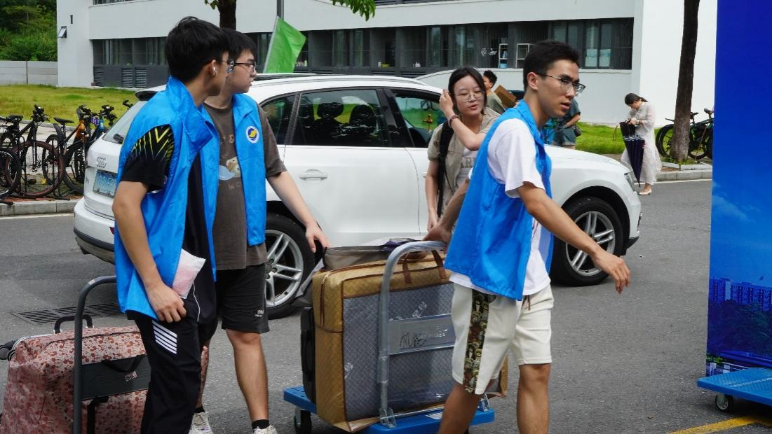 志愿者们热情似火,积极协助新生搬运行李,并贴心地为他们引路,带领新生到班助处报到,协助新生完成宿舍入住、办理校园网、购买军训服、激活银行卡……