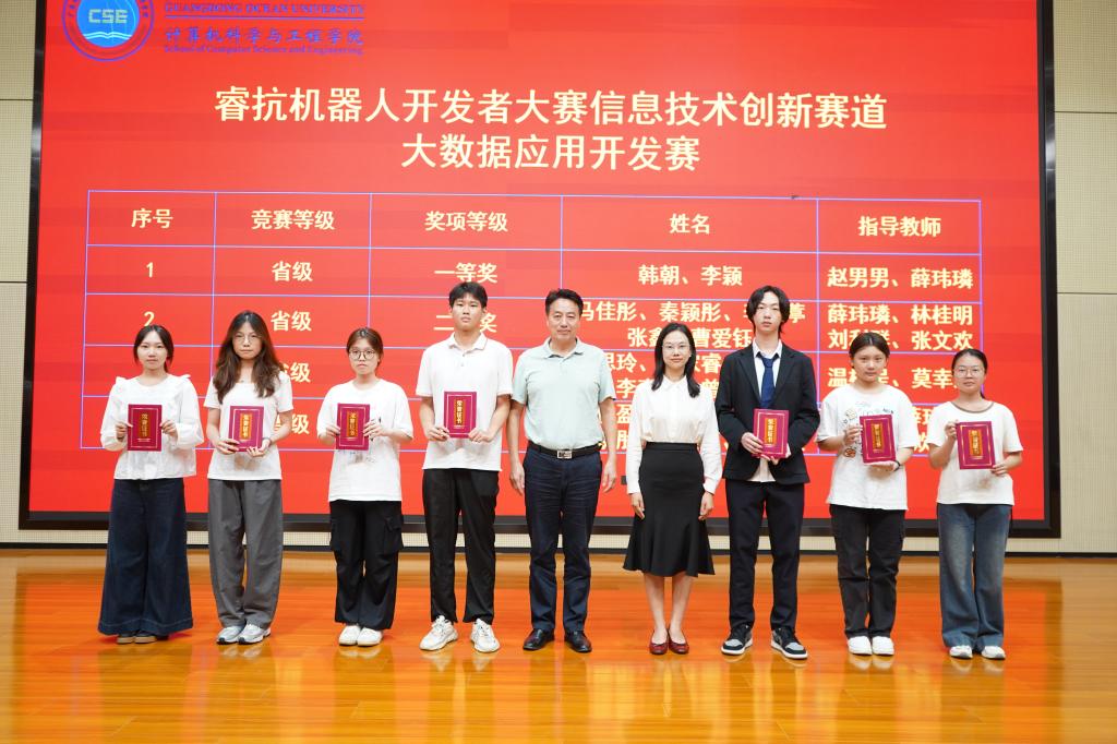 最后,学院集中表彰了在学科竞赛、科研创新中斩获佳绩的学生,校区各部门负责人及学院领导共同为获奖学生颁发荣誉证书。刘利群向新入职教师颁发寄望书,寄予立德树人、躬耕教坛的殷切期望。