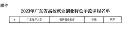 近日,广东省教育厅公布2023年广东省高校就业创业特色示范课程名单的通知,欧冠徐进老师主持的《创新创业教育》课程获评为广东省高校就业创业特色示范课程。