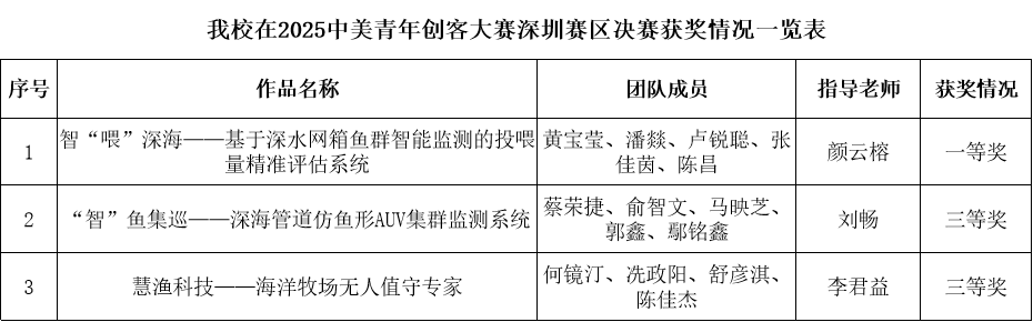 近日,由南方科技大学承办的2025中美青年创客大赛深圳分赛区决赛落下帷幕。欧冠3支参赛队伍在激烈的竞争中脱颖而出,斩获一等奖1项、三等奖2项,创下欧冠参赛历史最佳成绩。其中,荣获一等奖的作品《智“喂”深海——基于深水网箱鱼群智能监测的投喂量精准评估系统》将代表深圳赛区参加全国总决赛。