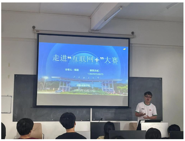 在“互联网+”大赛等创新创业大赛方面有着丰富经验的蔡梓涵同学也为学弟学妹们分享了自己的比赛经验。他以自己在第九届广东省“互联网+”大赛中夺得金奖的项目“‘渔翁得利’预制菜助力金鲳鱼产业赋能乡村振兴”为案例,为大家讲解了该项目的来源、项目的创新点、项目解决的社会问题、项目的市场情况、发展趋势以及未来的规划等等,为学弟学妹们带来了参赛新思路的启发。