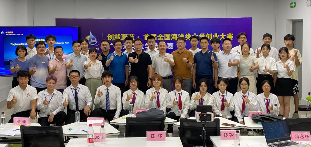 在决赛中,14个参赛团队就项目背景、市场分析及自身定位、产品核心竞争力、盈利模式等多方面进行、展示,并就专家评委的犀利提问进行了精彩答辩。全部参赛团队路演答辩结束后,由舟山市就业管理中心陈泓池女士作创就蔚蓝·首届全国海洋类大学创业大赛赛事推荐;经过激烈角逐,“鱼翁得利——预制菜助力金鲳鱼产业赋能乡村振兴”荣获一等奖;“耐温超人——助力沿海乡村振兴的金宝贝”、“茶鱼兴乡——科技帮扶,九州同乐”荣获二等奖,“海泰1号——国内首创新品种,振兴路上螺先锋”、“珊海智护——基于全自动珊瑚修复技术的水下作业机器人”、“水上慧眼——智能搜救无人船的突破者”荣获三等奖。