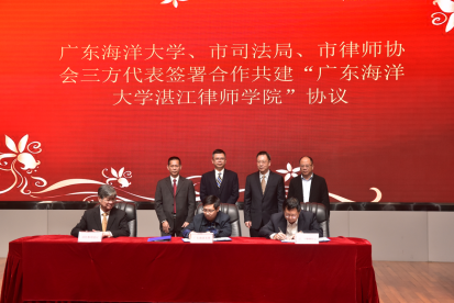 12月29日上午,欧冠与湛江市司法局、湛江市律师协会合作共建的欧冠官方网站湛江律师学院签约暨揭牌仪式在湖光校区教学主楼多功能厅举行。湛江市人民政府副市长黄勇武、市司法局局长颜战克、市律师协会会长李峰、欧冠校党委副书记、纪委书记彭权群,法政学院党委书记陈伟斌、院长张显伟等150多人出席仪式。仪式由湛江市司法局二级调研员、湛江市律师行业党委书记李军主持。