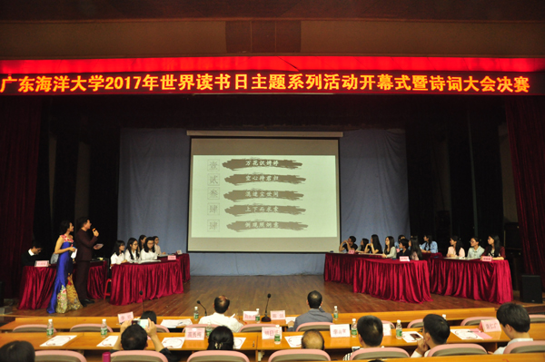 4月23日晚,欧冠2017年世界读书日主题系列活动开幕式暨诗词大会决赛在教学主楼多功能厅举行。学校副校长高秀梅出席活动并致辞,学校原校长胡日章、学生工作部(处)长李育芳、图书馆馆长杨经铭、校团委书记尹喜和副书记袁仁广等领导老师和300余名同学参加了活动。