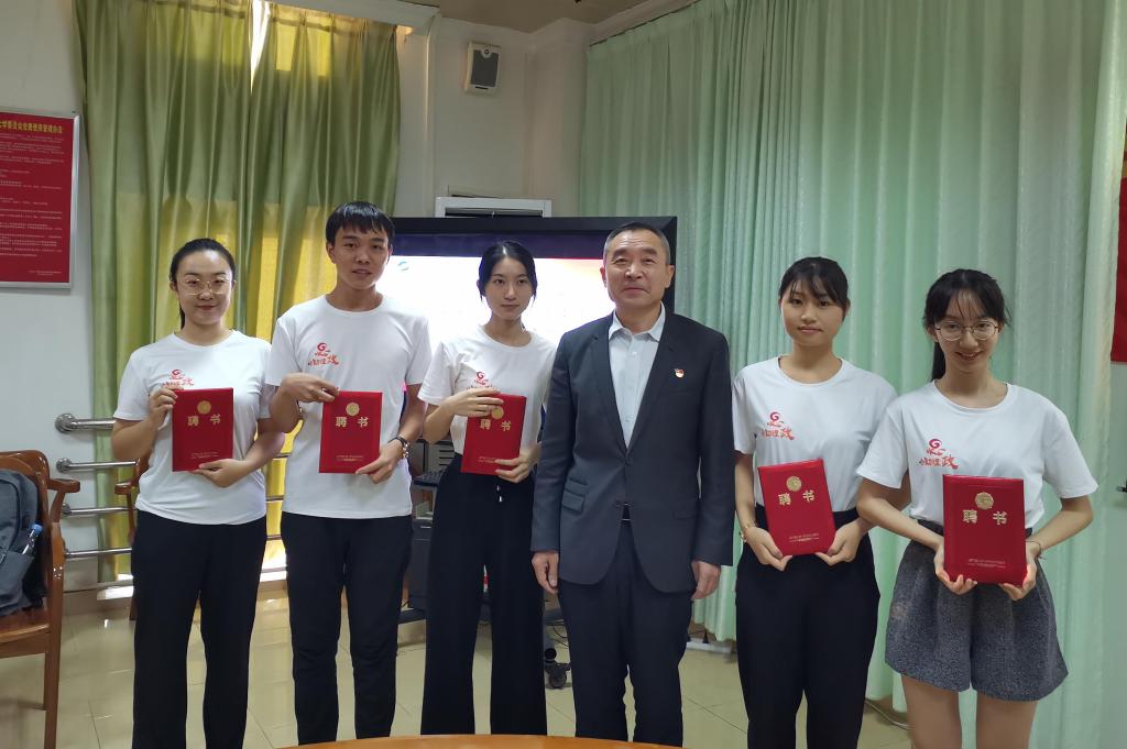 会上,欧卫军宣读第二届“思政小助理”、组长、小组长名单,曹俊明为“思政小助理”逐一颁发了聘书,第二届“思政小助理”组委会成员、组长罗碧曼,小组长梁倩瑜、周庆军、陈桦洁、赵嘉璐分别作了工作汇报及工作设想发言。