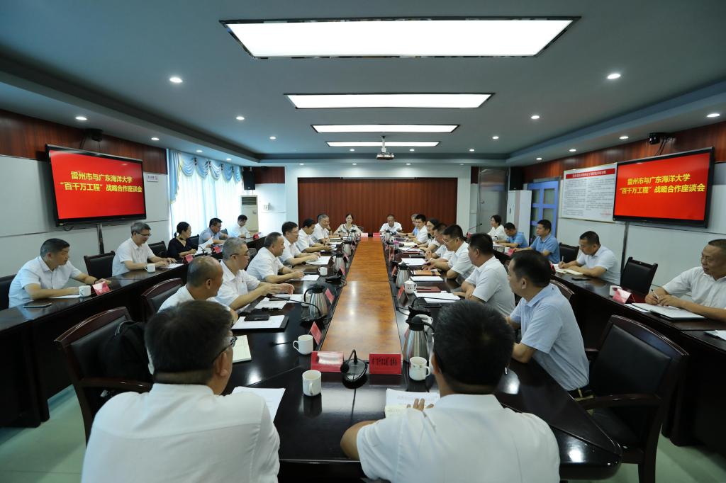 主题教育如火如荼,以学促干走深走实。为推动主题教育取得实实在在成效,主动挖掘地方社会和企业需求,推动校地深度融合,为“百千万工程”聚智赋能,7月13-14日,欧冠官方网站党委领导班子率学校党委办、校长办、组织部、宣传部、科技处、发展规划处等职能部门及水产学院、食品科技学院、滨海农业学院等相关学院负责人,先后赴徐闻县、雷州市开展实地考察调研及实践活动,并分别与徐闻县、雷州市及麻章区召开战略合作座谈会,就深化政产学研合作、全面推进“百县千镇万村高质量发展工程”、做好海洋经济发展大文章等进行深入交流。