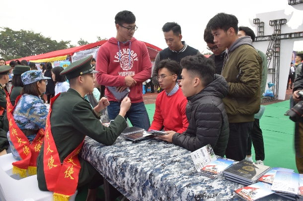 湛江市征兵办首次在粤西专场招聘会上进行了盛大征兵宣传,引起毕业生热烈反响。
