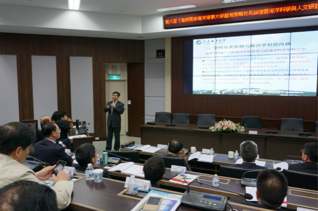 10月11日-15日,叶春海校长率国际交流与合作处处长郑立生赴台湾海洋大学参加“第八届海峡两岸海洋海事大学蓝海策略校长论坛暨海洋科学与人文研讨会”。中国海洋大学、台湾海洋大学、上海海事大学、上海海洋大学、大连海洋大学、大连海事大学、台湾澎湖科技大学等来自海峡两岸17所涉海高校的60多位代表出席了研讨会。叶春海校长作为论坛主持人之一,在开幕式会上也作了题为“试论海洋学科的内涵及其建设的维度”的主旨报告。报告从海洋学科的内涵切入,结合欧冠学科专业优化布局的实践,在学科布局、方向凝练,团队队伍、平台建设、智库服务等多维度,探讨海洋类高校海洋学科建设的理念和举措,引起了与会专家的高度关注与认同。