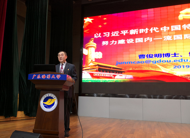 开班式后,曹俊明为学生干部作了题为《以习近平新时代中国特色社会主义思想为指导,努力建设国内一流国际知名的高水平海洋大学》的辅导报告。曹俊明介绍了学校党代会召开和落实目标任务的时代背景,从第三次党代会以来取得的主要成就、面临的主要困难和不足、新时代奋斗目标和战略安排等三个方面介绍了学校第四次党代会报告的主要内容,重点介绍了“九大工程”,引导学生干部全面、系统把握学校第四次党代会精神。曹俊明希望全体学生干部自觉担负起历史使命,做奋发有为的新时代海大人,在“坚定理想信念、厚植爱国主义情怀、加强品德修养、增长知识见识、培养奋斗精神和增强综合素质”六个方面下功夫。报告内容详实、数据充分、深入浅出、风趣幽默,赢得同学们的阵阵掌声。