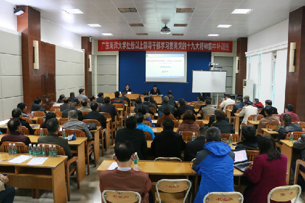 1月10至12日,学校在湖光校区举办处级以上领导干部学习贯彻党的十九大精神集中补训班,全校近100名副处级以上领导干部参加了培训。补训班由组织部部长林宇主持。