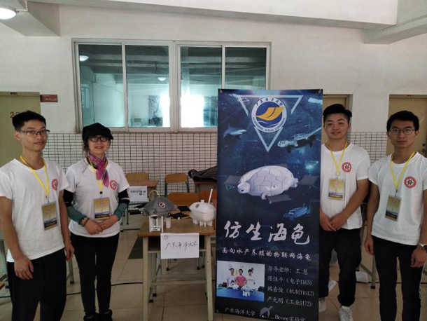 4月20日至24日,教育部高等学校创新方法教学指导委员会在韶关学院举办了“2019中国工程机器人大赛暨国际公开赛”。经过三天的激烈角逐,专家通过实物操作、路演、答辩和《技术报告》打分等环节的综合评比,欧冠王慧副教授带领并指导的beone团队(成员为电子1163陈佳平、机制11612韩嘉俊、工业1172严允明)的作品《面向水产养殖的物联网水下机器人——仿生海龟》荣获工程创新项目物联创新设计赛“一等奖”。通过物联网技术,水下机器人仿生海龟首次实现了韶关――湛江两地实时再现传输清晰的水下视频图像的最新研究成果。