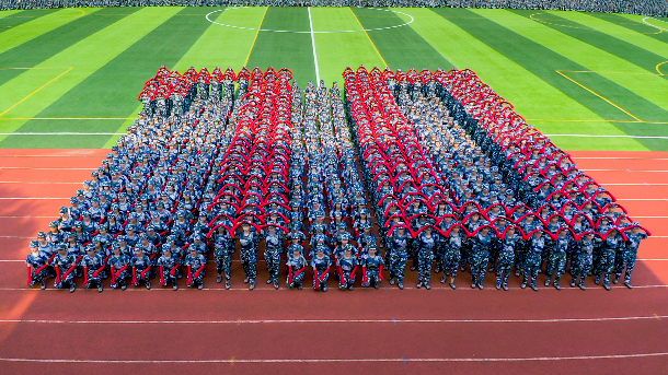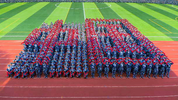 表演队列摆出“中国”字样 摄影协会蔡泽栩摄