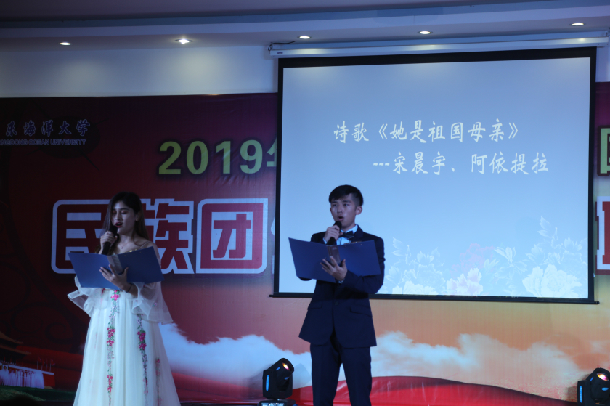 联欢会在《但愿人长久》的歌声中拉开序幕,乐器弹唱《呼吸决定》、配乐诗朗诵《她是祖国母亲》、独舞《花儿为什么红》、哈萨克语歌曲《离别亦思念》等文艺节目亮点纷呈,同时穿插猜灯谜、国史校史抢答、击鼓传月饼等互动游戏环节,现场气氛热烈。整台联欢会演绎了中华民族大团结的温馨场面,表达了向祖国70周年华诞献礼的主题。活动结尾,全体师生挥舞手中的国旗放声高唱《我和我的祖国》,把联欢活动推向高潮。