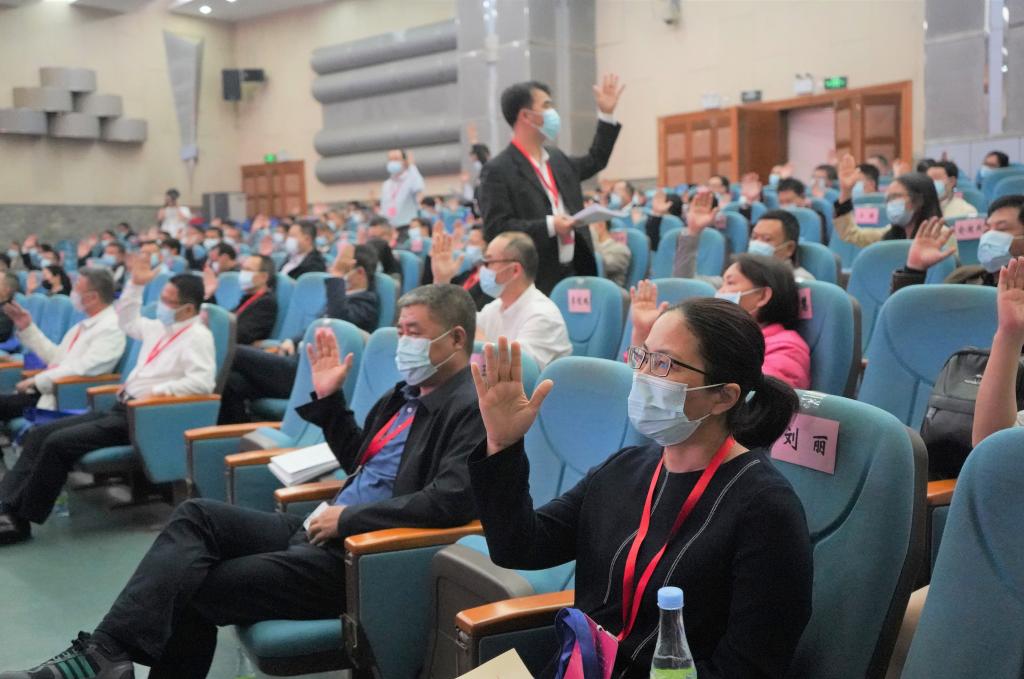 凝聚共识再出发,团结奋进新征程。3月29日下午,学校第五届教职工代表大会第三次会议圆满完成各项议程后在湖光校区教学主楼多功能厅闭幕。大会主席团执行主席曹俊明、彭权群、林晓敏、刘东超、高秀梅、谭北平、宁凌、邓逢光出席会议并在主席台就坐。147名正式代表参加了会议。学校党委书记曹俊明作题为《弘扬伟大建党精神 加强教师思想引领 汇聚奋进新征程建功新时代的强大智慧力量》的大会闭幕讲话。学校党委副书记林晓敏主持全体代表第二次会议。