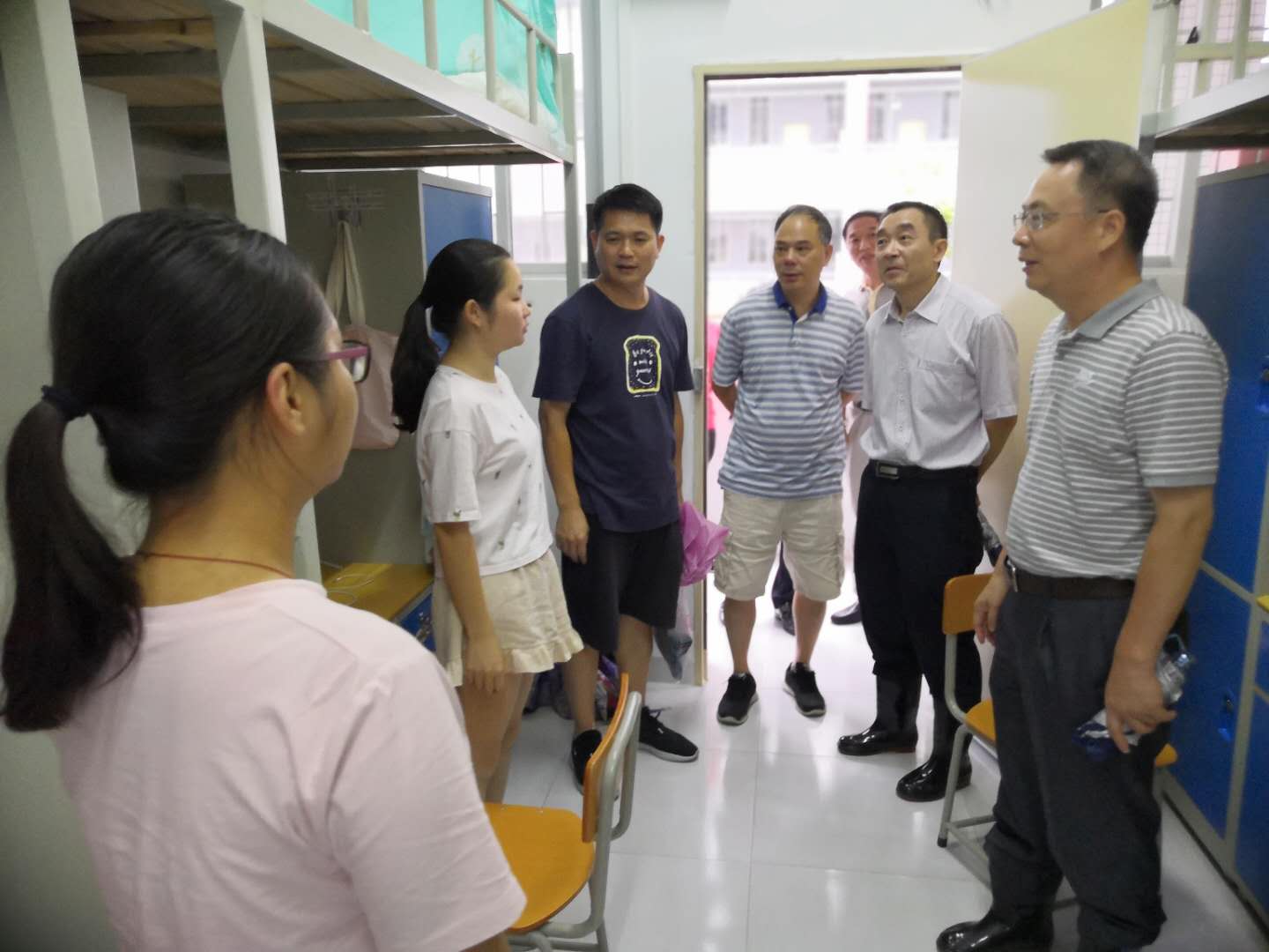 为贯彻落实9月16日上午广东省教育厅关于防台风部署视频会议精神,认真做好台风防御工作,当天下午4时左右,校领导率党委办、校长办、纪委办、学生处、团委、保卫处、后勤管理处、综合服务中心、饮食服务中心、学生公寓服务管理中心等相关部门负责人以及部分二级学院分管学生工作领导,对湖光校区防风工作进行全面排查。巡查组先后巡查了校园及校门口周围抗风总体情况,并深入学生公寓、食堂等场所,关心了解学生吃住行等情况,同时提醒学生如何防范台风,确保安全。