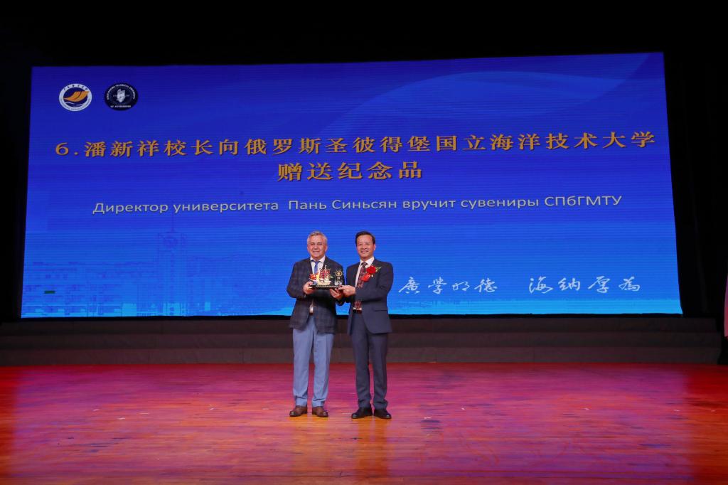 潘新祥向俄罗斯圣彼得堡国立海洋技术大学赠送纪念品