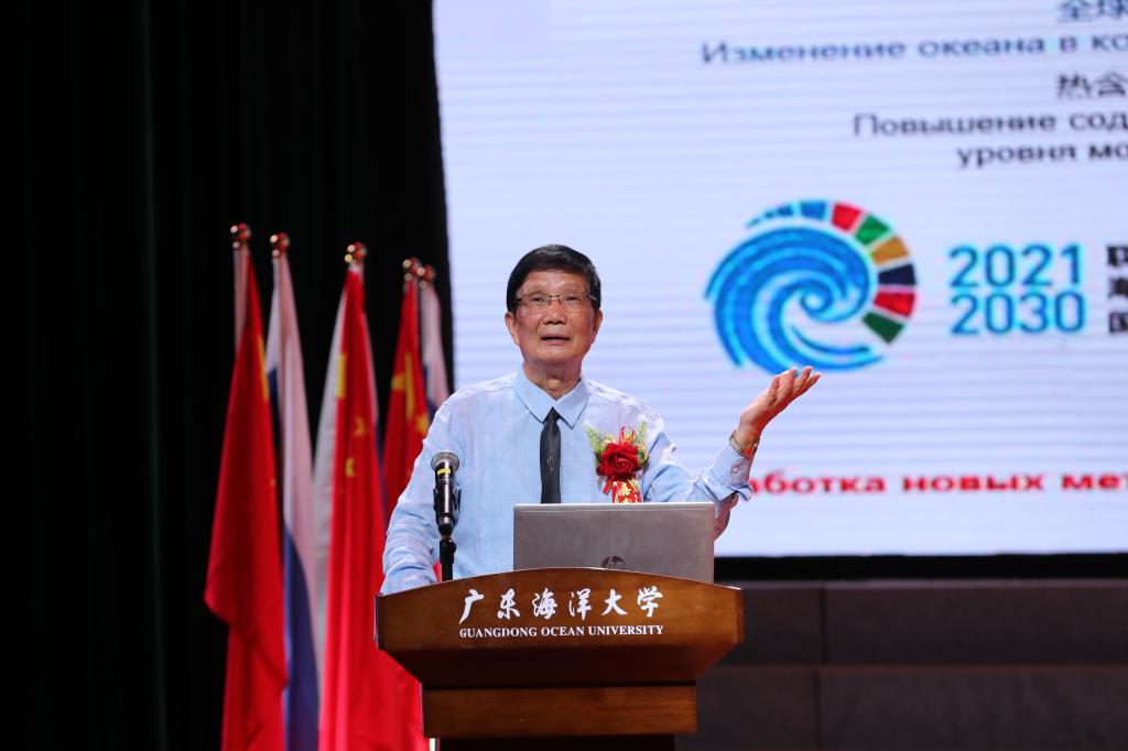 在热烈的掌声中,潘德炉院士、费拉雷托夫院士、朱超华、潘新祥、基里尔·罗杰斯特文斯基,以及集美大学校长李清彪、海南热带海洋学院党委书记陈锐、湛江市人民政府副秘书长曾海等共同为学院成立揭牌。