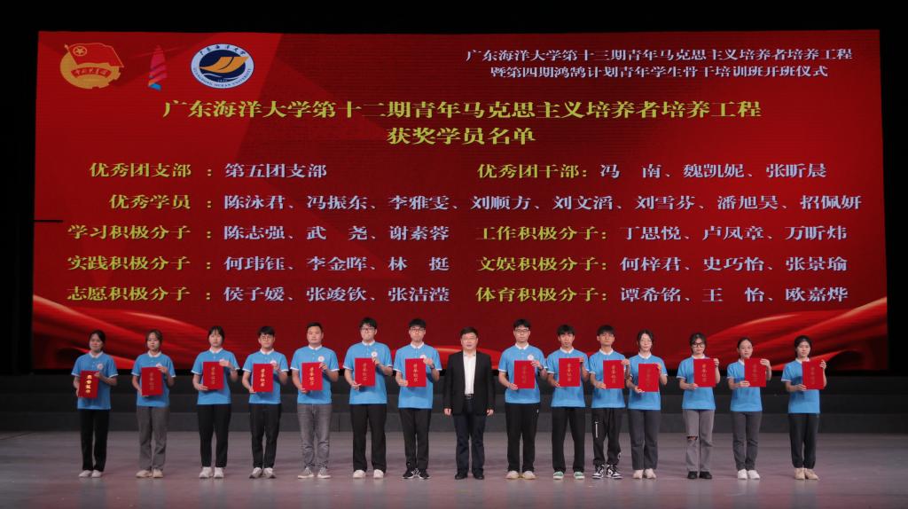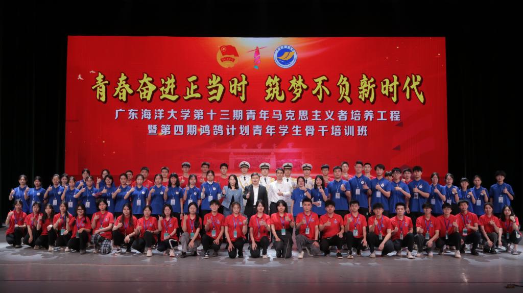 3月29日下午,以“青春向党,再启新程”为主题的欧冠第十三期“青年马克思主义者培养工程”暨第四期“鸿鹄计划”青年学生骨干培训班开班仪式在湖光校区中歌实验剧场举行。学校党委书记杨洲,党委副书记林晓敏出席仪式。党委办主任王明对、学生处处长肖文辉、校团委和学院分管学生工作的领导以及全体培训班学员,学院青马学员代表约500人现场参加仪式,阳江校区青马学员线上参加仪式。开班仪式由校团委书记郑一鸣主持。