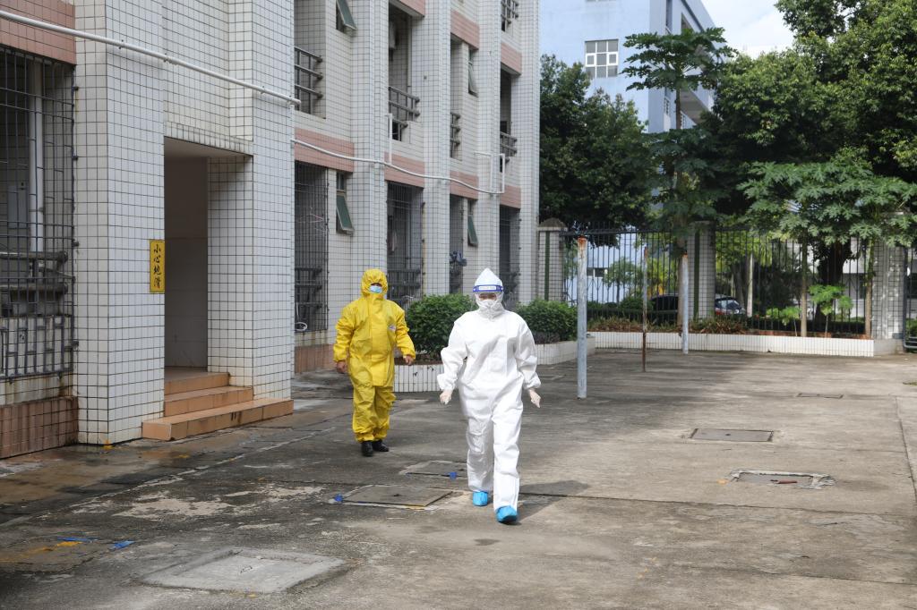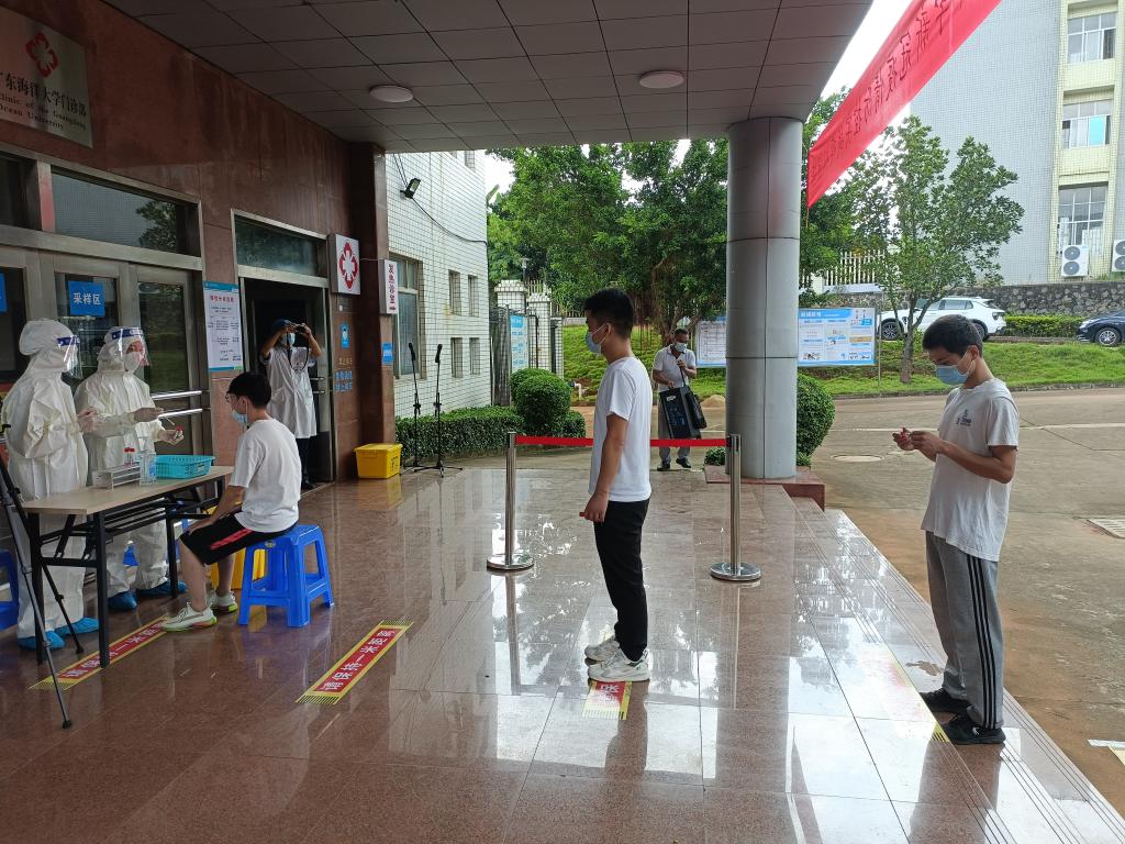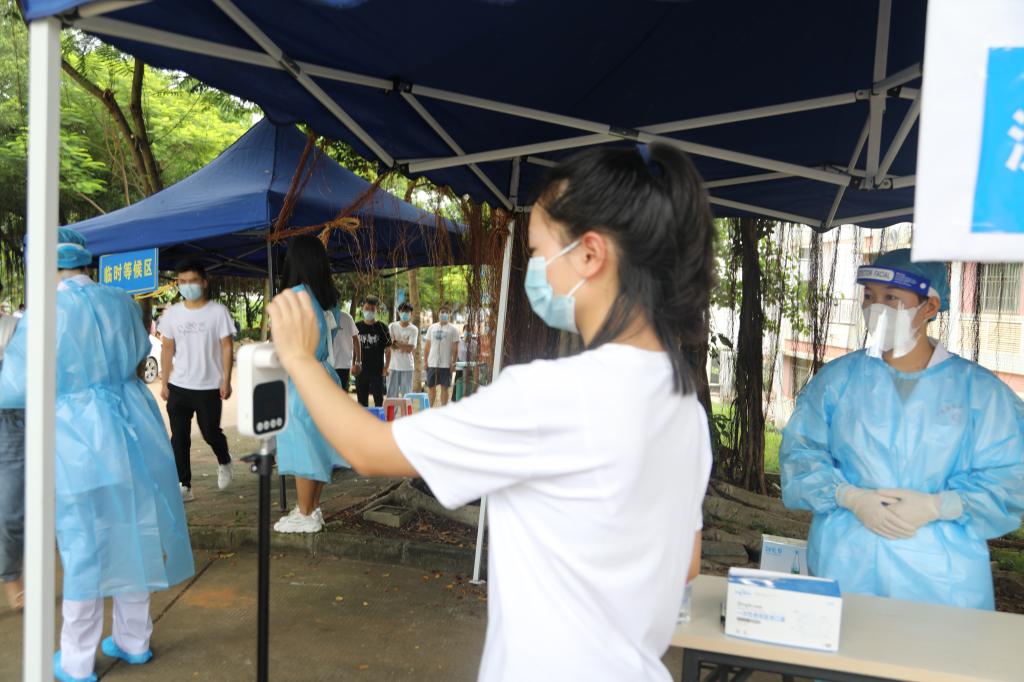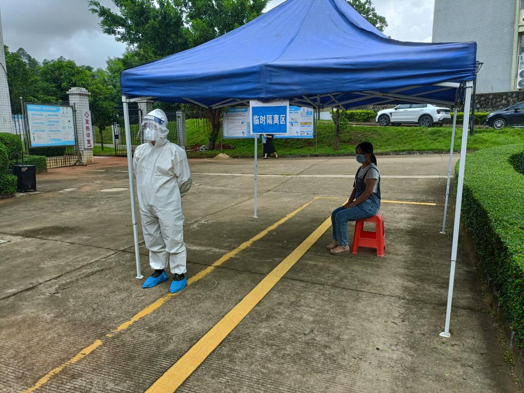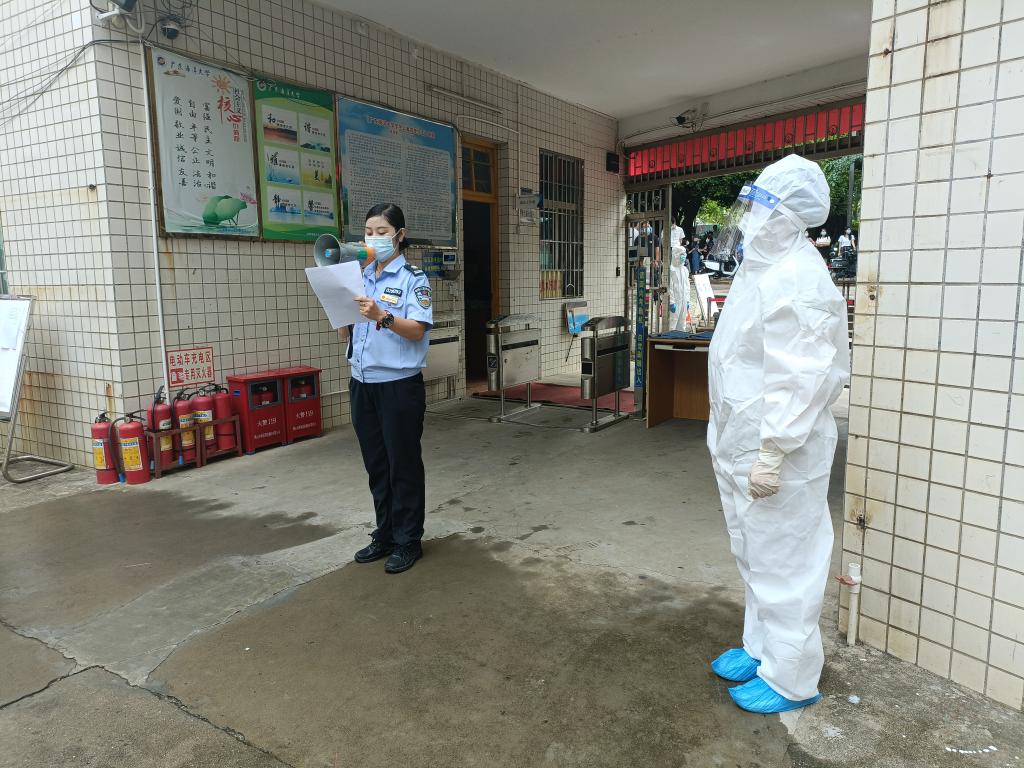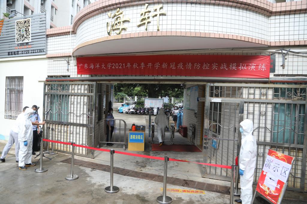 此次演练采用实战模式,分别在湖光校区海轩宿舍大院、校门诊部、南门等重点场所设置演练点,模拟背景为:欧冠1名学生张某确认为密切接触者后,学校迅速启动应急预案情景。