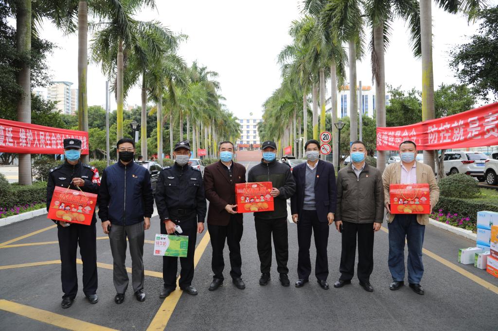 曹俊明一行先后来到湖光校区、海滨校区、菉林与光华教工宿舍区、霞山校区等地方的多个重点场所和单位,实地检查了疫情防控工作的组织开展情况。曹俊明对学校当前疫情防控工作开展情况给予充分肯定,代表学校党委和全校师生,向新冠肺炎疫情发生以来一直坚守在疫情防控一线的工作人员表示亲切慰问并致以崇高敬意,给他们送上慰问物品,通过他们向所有默默付出的一线工作人员家属表示衷心感谢。