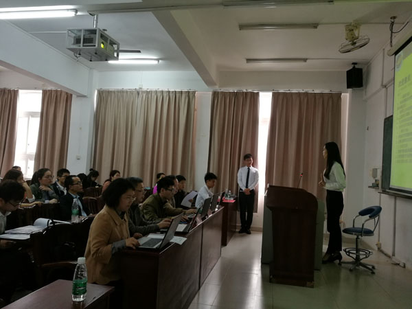 各个团队通过PPT讲演向评委展示自己的研究成果,接受评委的检验和提问。评委们结合每件作品的内容和学生的答辩情况,对作品提出了存在的问题和改进的意见。很多团队答辩完后又悄悄地从教室后门回到座位上,静观其他团队的展示和答辩,认真学习,取长补短,不放过任何学习的机会。参赛的同学都深有体会:终审答辩既是一场比赛,更是一个学习提高的平台!