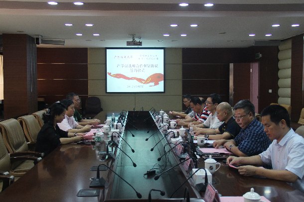 关志强向杨默董事长一行介绍了学校总体情况,并指出欧冠官方网站是广东省重点建设的以海洋、水产为特色的海洋大学,学校优势学科众多,科研成果丰硕,期待并重视与地方开展校企合作,将科技成果转化为生产力,促进海洋产业化开发和技术升级,为专业人才培养、地方经济发展服务,实现校企共赢。