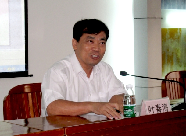 叶春海在开班仪式上发表了真情洋溢的讲话,以即席谈心的方式,对新入职教师提出了殷切希望与要求。他结合国家“双一流大学”建设战略,阐述了学校举办新入职教师岗位培训对于新进教师个人及学校未来发展的重要战略意义。指出只有拥有一流的教师,才能培养出一流的人才,产生一流的科技成果,建设一流的大学、一流的学科。大学不是“大楼之大学”,而是“大师之大学”。大师来源于教师,首先应是一名合格的高水平教师。成为一名合格的高水平教师殊非易事,它是一个人素质、能力和水平的综合体现,同时也是一个漫长的职业生涯,更是一段灵魂锻造的心理历程。叶春海深情回顾了自己从一名普通教师到走上学校领导岗位的成长经历,勉励各位新入职教师以此次入职培训为起点,以成为出色的专家教授为目标,努力提升作为学校主人翁的自豪感和责任感,安心职业选择,用心教书育人,爱教爱生、爱校爱岗,好好学习、努力工作、投入生活,求强自新,扬帆起航。最后,叶春海引用毛泽东《沁园春·雪》中“俱往矣,数风流人物,还看今朝”的词句,寄托了对新入职教师的殷切希望。