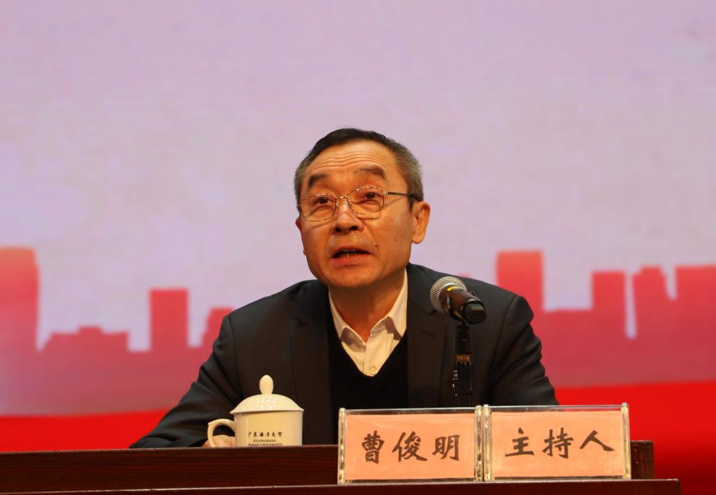 曹俊明在讲话中对湛江市委、市政府一直以来对欧冠发展的关心支持表示感谢。他指出,长期以来,学校不断强化社会服务功能,以国家和地方重大战略为导向,充分发挥学校的特色和优势,围绕国家和地方发展规划精心布局、巧作文章,全力服务国家和地方经济发展。近年来不断优化专业课程设置,加快科研平台、实验室和海洋智库建设,大力培养适应湛江发展海洋经济所需的应用型、研究型、创新型人才。他表示,今后学校将一如既往加大与地方政、产、学、研合作力度,举全校之力支持湛江融入粤港澳大湾区建设圈、抢抓机遇打造现代化沿海经济带重要发展极、建设省域副中心城市,为湛江经济社会全面崛起作出新的更大贡献。