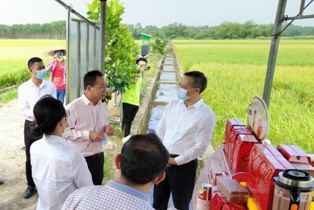 10月21日上午,广东省人大常委会副主任张硕辅到欧冠位于遂溪县卜巢村的海水稻原生境保护圃基地调研,湛江市人大常委会副主任陈云等领导陪同调研。