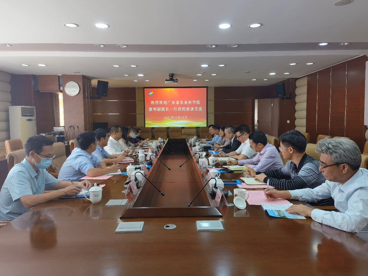 广东省农业科学院农业资源与环境研究所所长顾文杰、动物卫生研究所副所长王刚及动物科学研究所水产研究室主任黄文、欧冠水产学院院长李广丽、研究生院副院长叶国栋、科技处副处长伍彬、滨海农业学院副院长马驿、畜牧学学科带头人赵志辉等就各自的研究方向及合作需求进行交流互动。