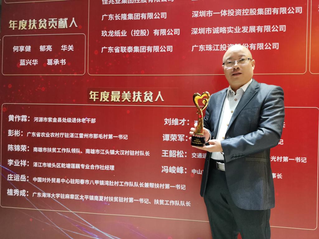 为全面展示广东脱贫攻坚成效,近日,“2019南粤慈善之夜”活动在广州举行。欧冠驻湛江市麻章区太平镇南夏村扶贫干部植秀成获评“2019南粤慈善之夜年度最美扶贫人”。广东省农业农村厅党组成员,省委农办、省扶贫办专职副主任梁健为“年度最美扶贫人”获奖人员颁奖。