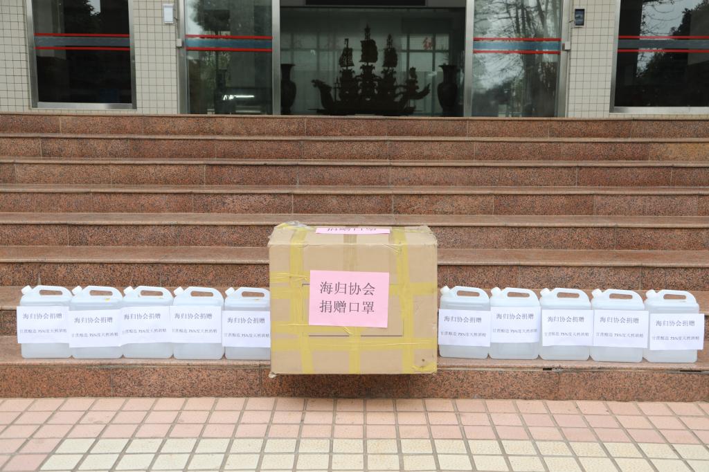 湛江市海归协会向海大捐赠的2000个医用口罩和100斤消毒酒精