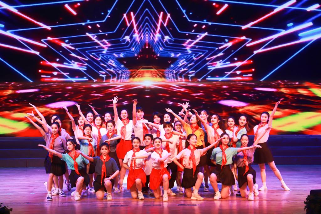 表彰结束后,现场进行了节目表演。表演由“百年华章·溯源”、“华彩绽放·筑魂”和“五四奋起·致敬”三个篇章组成,整台演出主题鲜明、形式多样、气势恢宏。诗歌朗诵《跨越百年正青春》铿锵有力、感情真挚,生动展示了100年来中国青年在探寻国家富强、民族振兴、人民幸福的伟大征程上笃行不怠、踔厉奋发的青春形象。古典舞《雨花石的等待》、话剧《拂晓》、模特秀《汉尚华莲》等节目,精彩纷呈。民族舞《映山红》、独唱《北疆连着我家乡》、情景剧表演《守护边防线》、女子花样操枪表演《铿锵玫瑰》等节目,展示了欧冠青年学生听党话、感党恩、跟党走的理想信念和坚定决心。原创诗朗诵作品《拥抱海大·向梦出发》,聚焦海大校史,充分挖掘在不同历史时期莘莘学子在欧冠成长成才的故事。舞蹈《我和我的祖国》催人奋进,啦啦操《致青春》朝气蓬勃,描绘了一幅幅色彩缤纷的新时代青春画卷。大合唱《强国一代有我在》唱响了海大青年不负时代、不负人民、不负祖国的青春誓言,将演出气氛推向高潮。