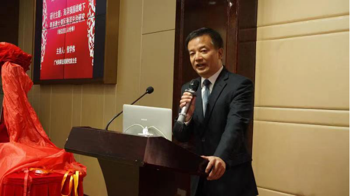 开幕式由欧冠法政学院院长张显伟主持,他指出,为更好地贯彻海洋强国战略,推进粤港澳大湾区建设,经省法学会同意,在省委政法委、各涉海实务机关、省内高校、律师事务所代表的支持下,研究会成立大会暨“海洋强国战略下粤港澳大湾区海洋法治研究”学术研讨会交由法政学院承办并顺利召开,这是对学院学科建设和取得成绩的肯定,更是对学院未来发展的鞭策和激励,学院将不忘初心、砥砺前行,在海洋法学研究和专业特色发展上争取更大进步。