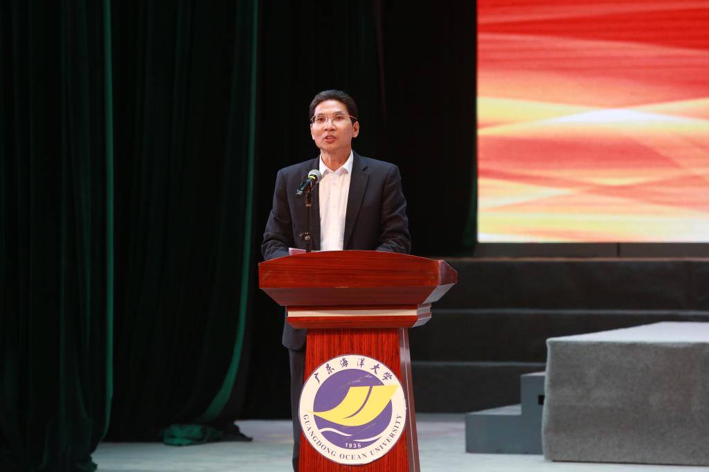 谢绍河在发言中深情缅怀恩师熊大仁教授的治学精神与高尚品格,希望各位同学通过话剧了解欧冠历史,学习熊大仁精神,为国家、为社会、为海大建设做出更大贡献。