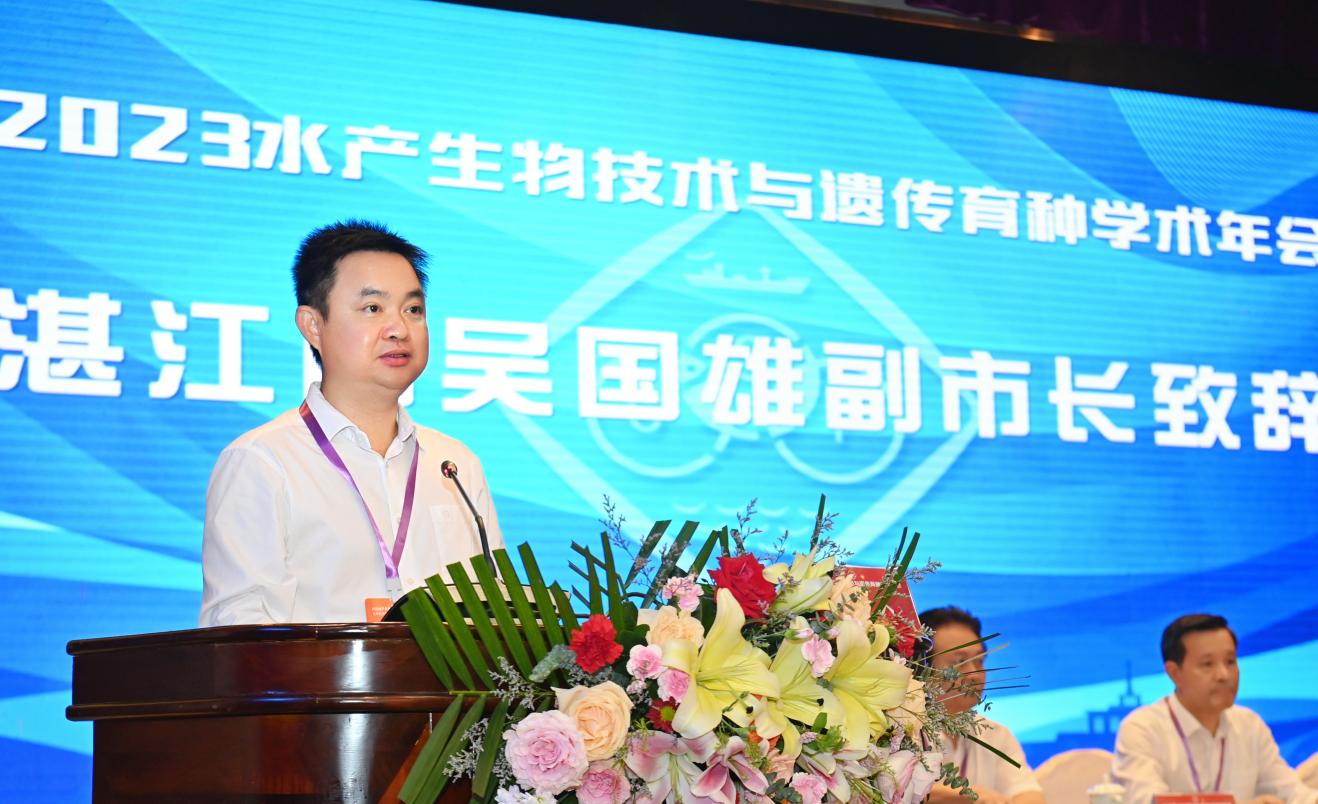 湛江市副市长吴国雄代表湛江市政府对此次年会的召开表示热烈的祝贺。他表示,湛江一直以来都非常重视发展海洋产业,水产品总产量和总产值连续二十年位居全省首位。2022年湛江市委、市政府出台《关于推动湛江市水产业高质量发展意见》,明确提出要大力发展深海网箱养殖,构建大型海上“蓝色粮仓”,衷心希望与会专家为湛江海洋产业发展献计献策,为湛江海洋产业发展添砖加瓦。