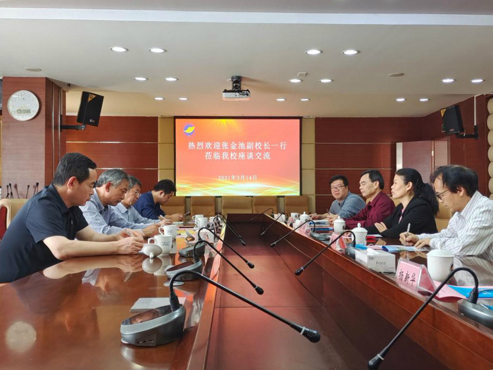3月14日下午,南京林业大学副校长张金池、轻工与食品学院党委书记吴勇、校党委委员魏勇、校友办主任李新宇一行4人来校交流。欧冠副校长高秀梅、食品科技学院党委书记苏永华、滨海农业学院韩维栋教授、校友办公室主任谭斌等与来宾在湖光校区行政楼五楼会议室进行了座谈交流。