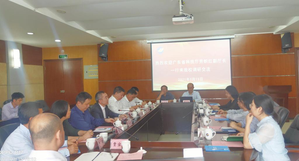 3月15日,省科技厅副厅长劳帜红一行3人莅临欧冠调研交流,湛江市科技局副局长刘志红等陪同调研。学校党委书记曹俊明、副校长谭北平,人事处、国际交流与合作处、省实验室建设办公室以及相关学院、科研机构主要负责人参加座谈交流。座谈会由谭北平主持。