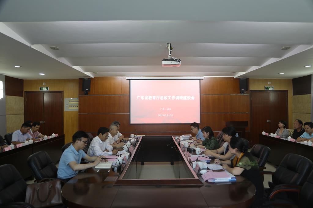 5月10日下午,广东省教育厅思想政治工作与宣传处处长倪熙、省高校心理健康教育与咨询专业委员会副主任苏亚玲一行莅临湛江开展调研,并在欧冠召开湛江地区有关高校思政工作调研座谈会。欧冠党委副书记林晓敏出席并主持座谈会,广东医科大学党委副书记罗辉、岭南师范学院党委副书记黄达海、湛江科技学院党委书记谭树明出席会议。