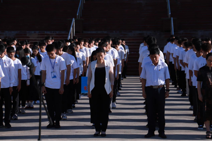 当日早上7点,学校500余名师生在海洋广场举行升旗仪式,并在升旗仪式后举行默哀仪式,表达对袁隆平院士的追思。