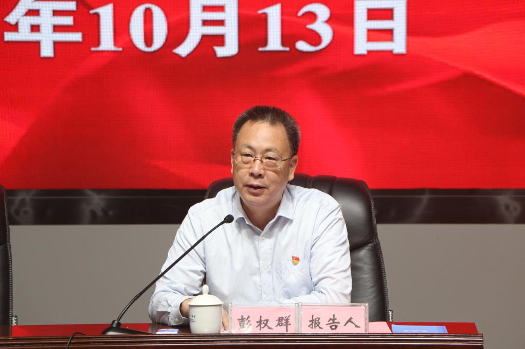 彭权群作题为《讲政治守纪律,勇于自我革命,推进学校纪检监察工作高质量发展》的专题报告。报告围绕“三个怎么看、一个怎么样”,传达学习了习近平总书记关于全面从严治党的重要指示批示精神,阐述了新时代全面从严治党工作的新形势新任务新要求。对全体纪检监察干部提出了要自觉忠诚于党、加强能力建设、领班子带队伍、敢担当善作为、恪守清正廉洁等五个要求。并从压实管党治党责任、强化政治监督、加强日常监督、从严执纪问责、协助和监督巡视整改工作等五个方面提出了全面推进学校纪检监察工作高质量发展的有效举措。