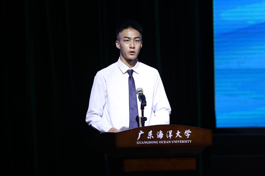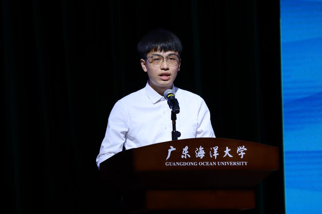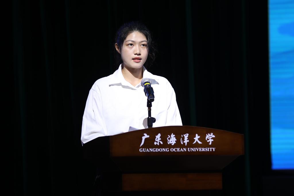 管理学院谭艺雯作为在校本科生代表发言,她以海大女篮在征战CUBA(全国大学生篮球二级联赛)勇夺全国总冠军的经历勉励新生,要怀揣勇气,不断实现自我超越。食品科技学院食品科学与工程专业田奇作为2021级本科生代表发言,表示青年一代重任在肩,责无旁贷,一定会牢记习近平总书记嘱托,传承红色精神、坚定理想信念,勇敢地挑起时代、社会、人民、国家交给的担子,努力追逐诗和远方,坚毅前行。马克思主义学院李国正作为2021级研究生代表发言,表示将恪守“广学明德、海纳厚为”的校训,秉承“坚韧不拔、自强不息”的海大精神,坚守学术道德,好学勤思、厚积薄发,为校园注入顽强生命力和新鲜活力。
