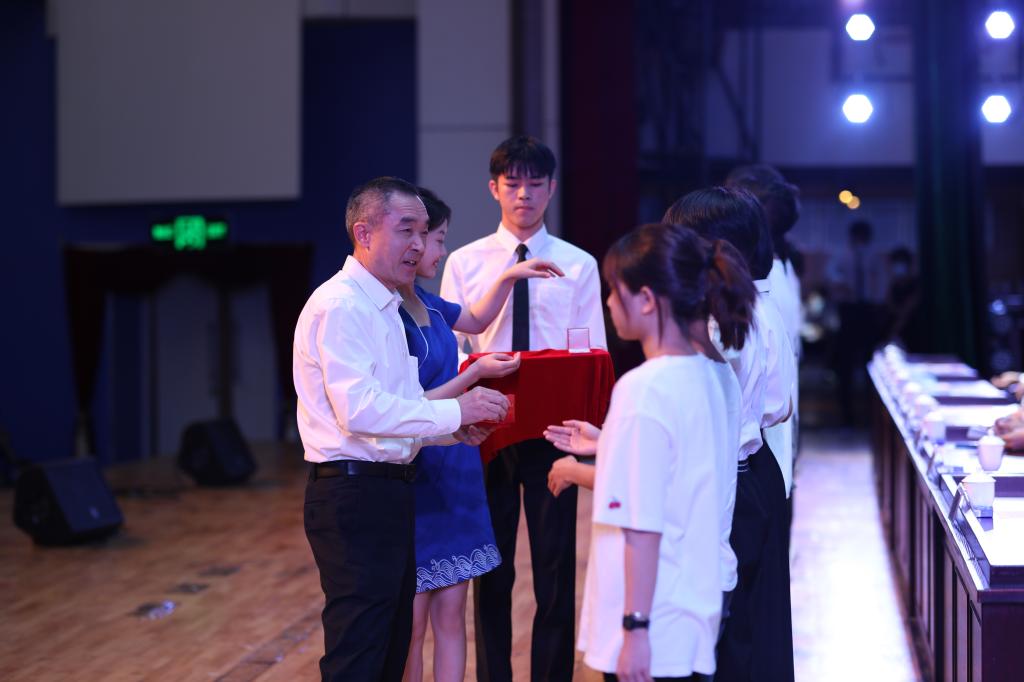 在庄严的国歌声中,大会拉开帷幕。典礼上,学校党委书记曹俊明为新生代表颁发校徽,学校相关领导发表了热情洋溢的讲话。