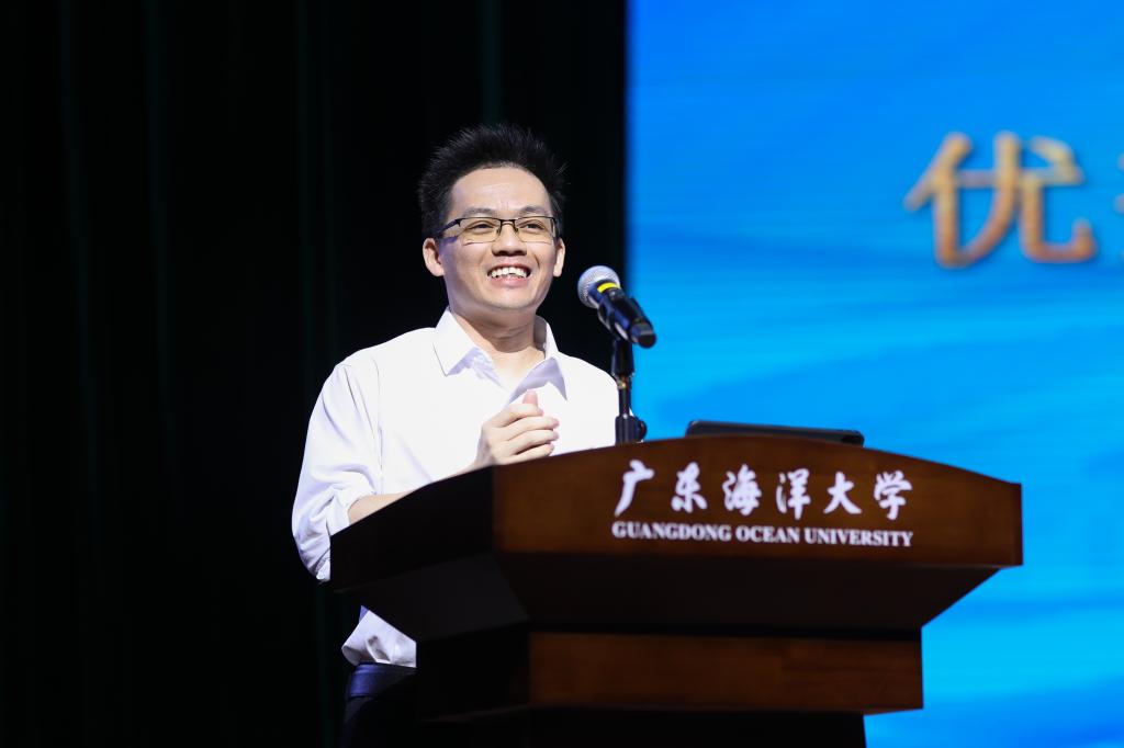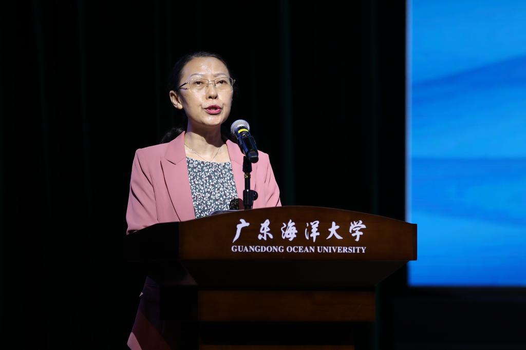 水产学院梁海鹰教授作为教师代表发言,勉励新生要做有理想、有目标、有思路、有行动的大学生,持之以恒,知行合一,勇于面对困难,善于迎接挑战。她向全体学生承诺,教学团队将继续牢记育人初心,坚持正确的育人导向,秉持“爱生如子”的情怀,保持积极进取的精神,把真情、真爱和真知传授给学生。