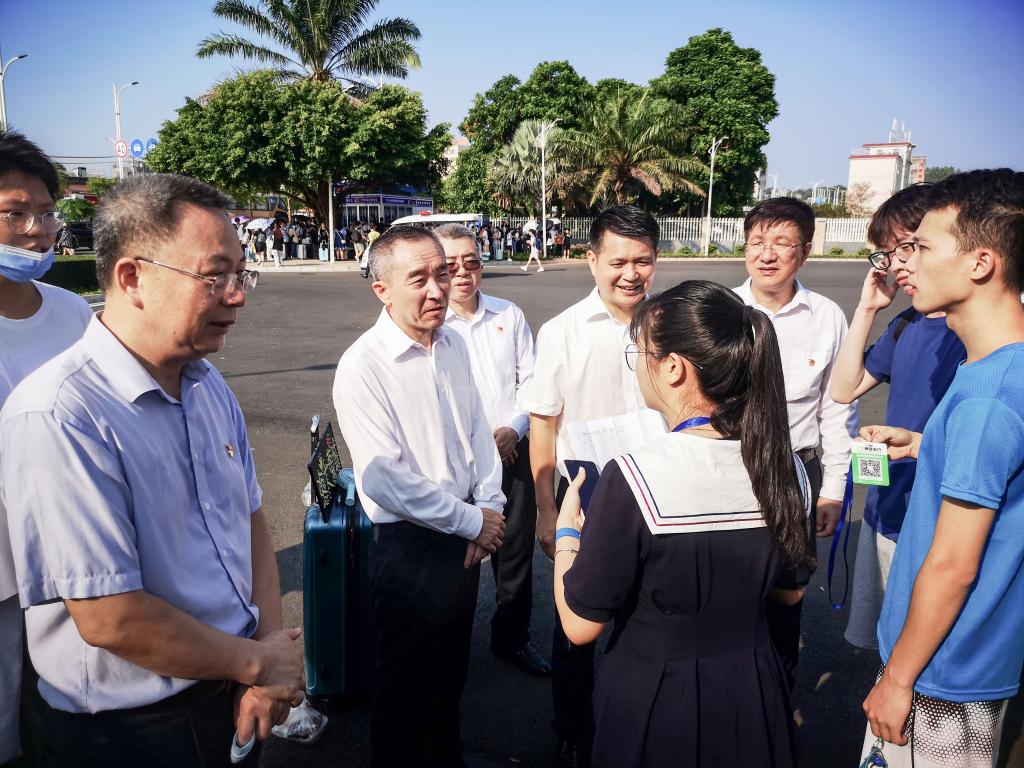 在湖光校区南门广场,曹俊明一行实地查看了校区南门及周边区域安保措施落实情况,并与候车的学生进行深入交流,询问了他们的假期安排,叮嘱他们要加强自我卫生防护,注意往返出行安全。