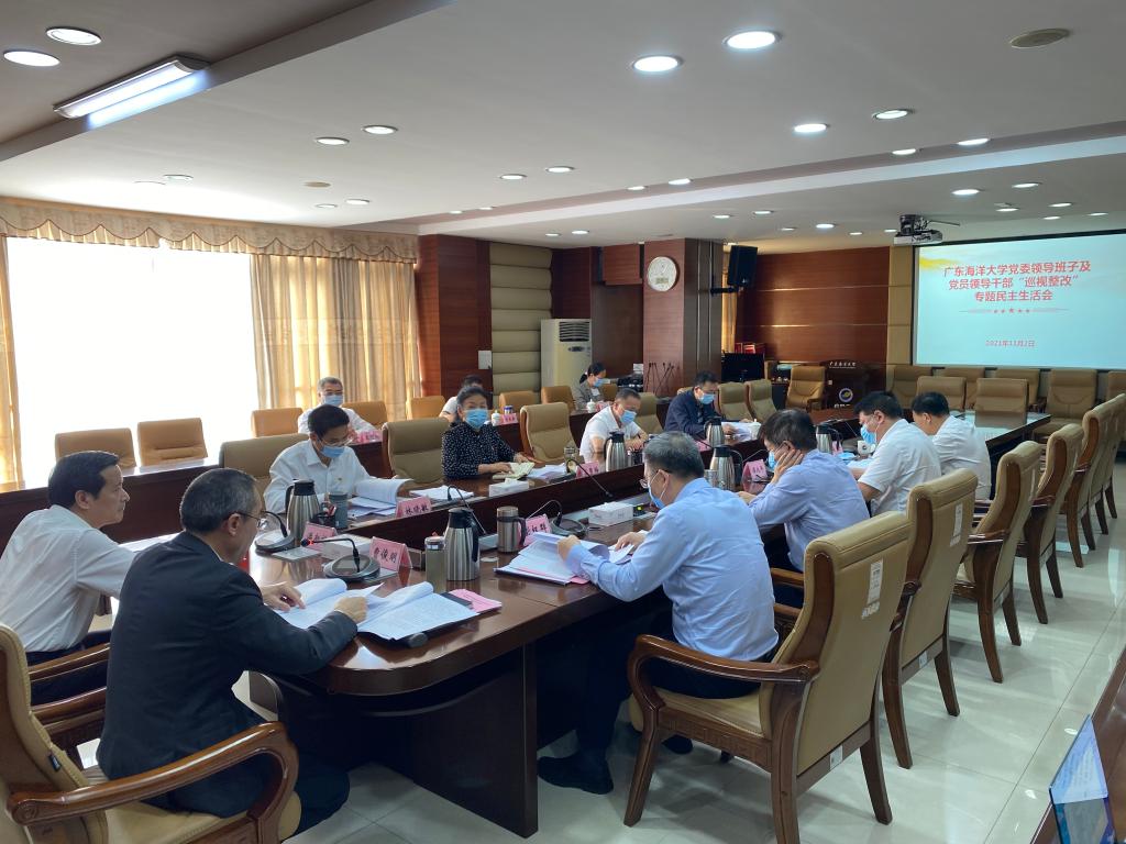 经上级党组织批准,11月2日,学校党委常委领导班子在湖光校区行政楼五楼会议室召开2021年“巡视整改”专题民主生活会。党委书记曹俊明主持会议,省委组织部干部五处四级调研员黄华强同志到会指导,学校全部9位党委常委参加会议,党委办公室、纪检监察室、党委宣传部负责人列席会议。