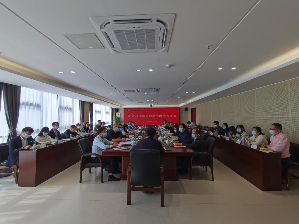 为深入学习宣传贯彻党的十九届六中全会精神,贯彻落实习近平总书记关于意识形态工作的重要论述精神,进一步加强和改进阳江校区宣传思想工作, 11月19日,副校长刘东超带领党委宣传部部分干部前往阳江校区调研指导工作,主持召开校区意识形态工作专题会议。党委宣传部常务副部长欧卫军,阳江校区党委副书记、管委会常务副主任周昌仕以及管委会其他班子成员、各教学单位党组织负责人、各行政部门第一负责人、各单位部门通讯员以及学校党委宣传部部分干部参加会议。
