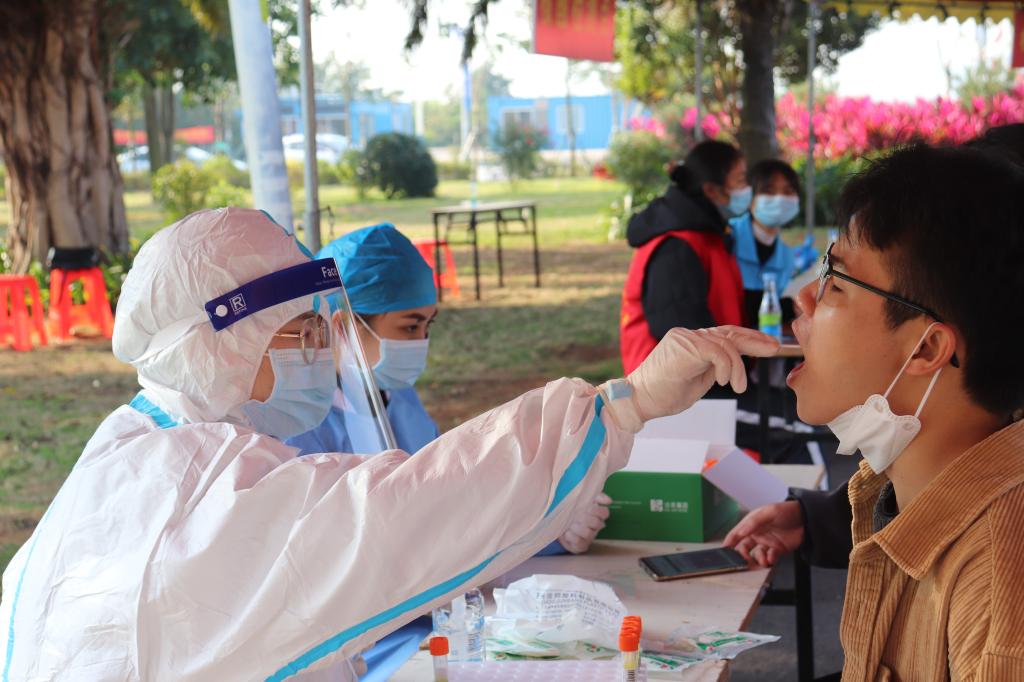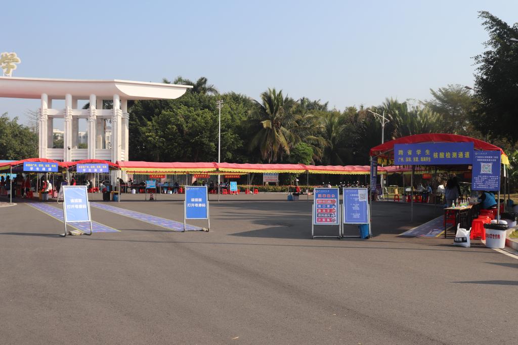 “欢迎回校,请各位同学戴好口罩……”校门前,返校学生在工作人员和学生志愿者的引导下,有序排队,依次通过行李消毒、查看健康码、返校申请的审核结果、体温检测、人脸识别等流程。现场还设置了临时观察区、志愿者服务站、治安报警点和专门为跨省返校学生设立的核酸检测点,对跨省返校和重点关注地区的返校学生进行“三天两检”,确保核酸结果正常后方可入校。各职能部门、各学院辅导员、学生志愿者、医护人员通力合作,全方位全流程地守护返校学生安全和健康。