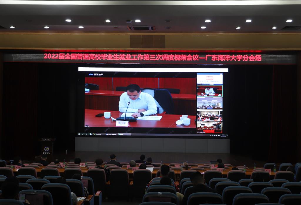 为深入贯彻党中央、国务院“稳就业”“保就业”决策部署,抓住当前毕业生就业冲刺期,调度推进各地高校毕业生就业工作,4月19日下午,教育部召开了2022届全国普通高校毕业生就业工作第三次调度视频会议。欧冠在湖光校区主楼多功能厅设立分会场,学校党委副书记林晓敏,招生与就业指导中心全体人员、研究生工作部负责人和就业相关工作人员、各学院分管学生工作领导及全体毕业班辅导员等50余人参加了会议。
